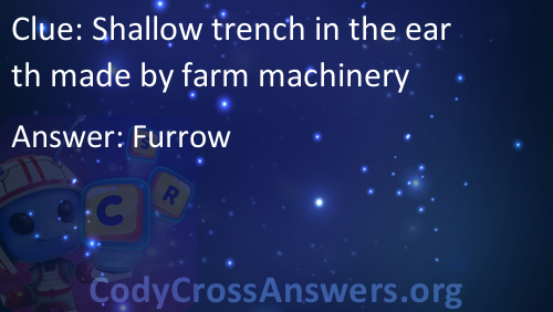 Shallow trench in the earth made by farm machinery Answers