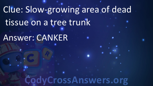 Slow-growing area of dead tissue on a tree trunk Answers