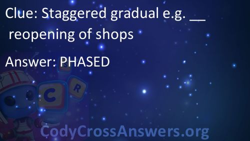 Staggered gradual e.g. __ reopening of shops Answers