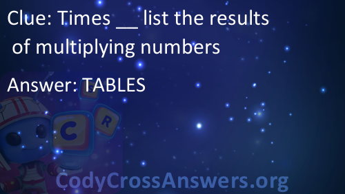 Times __ list the results of multiplying numbers Answers