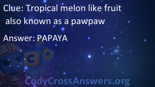 Tropical melon like fruit also known as a pawpaw Answers