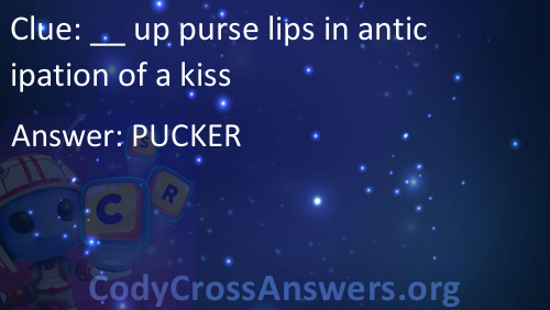 __ up purse lips in anticipation of a kiss Answers